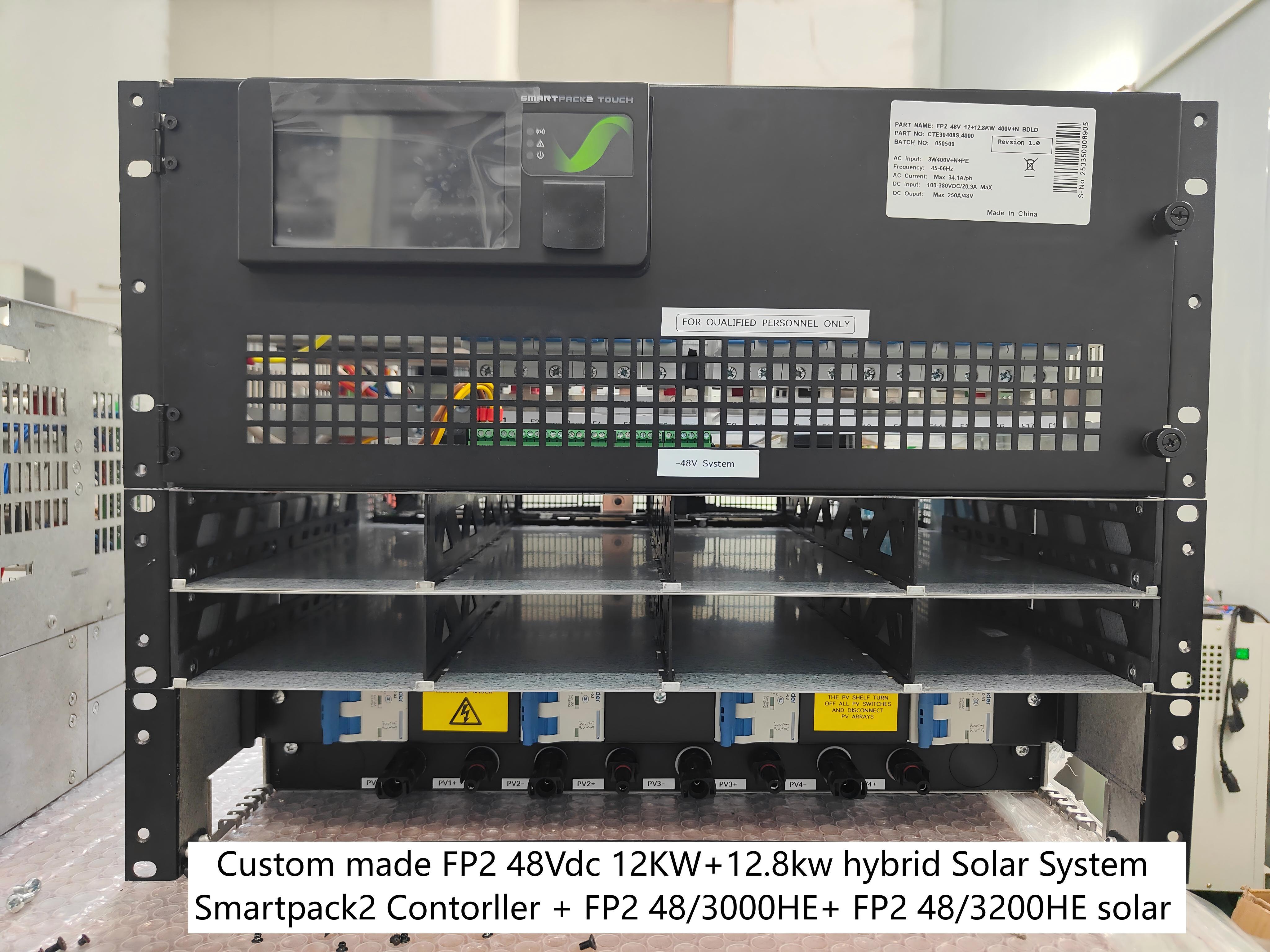 ระบบพลังแสงอาทิตย์แบบไฮบริด FP2 48Vdc 12+12.8KW 400V+N BD LD 3 ขั้นตอน 230V Smartpack2 Controller Flatpack2 48/3200HE โซลาร์